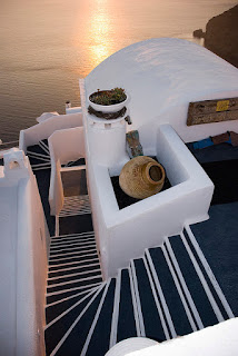 Staircase perspectives in Thira, Santorini Island, Greece